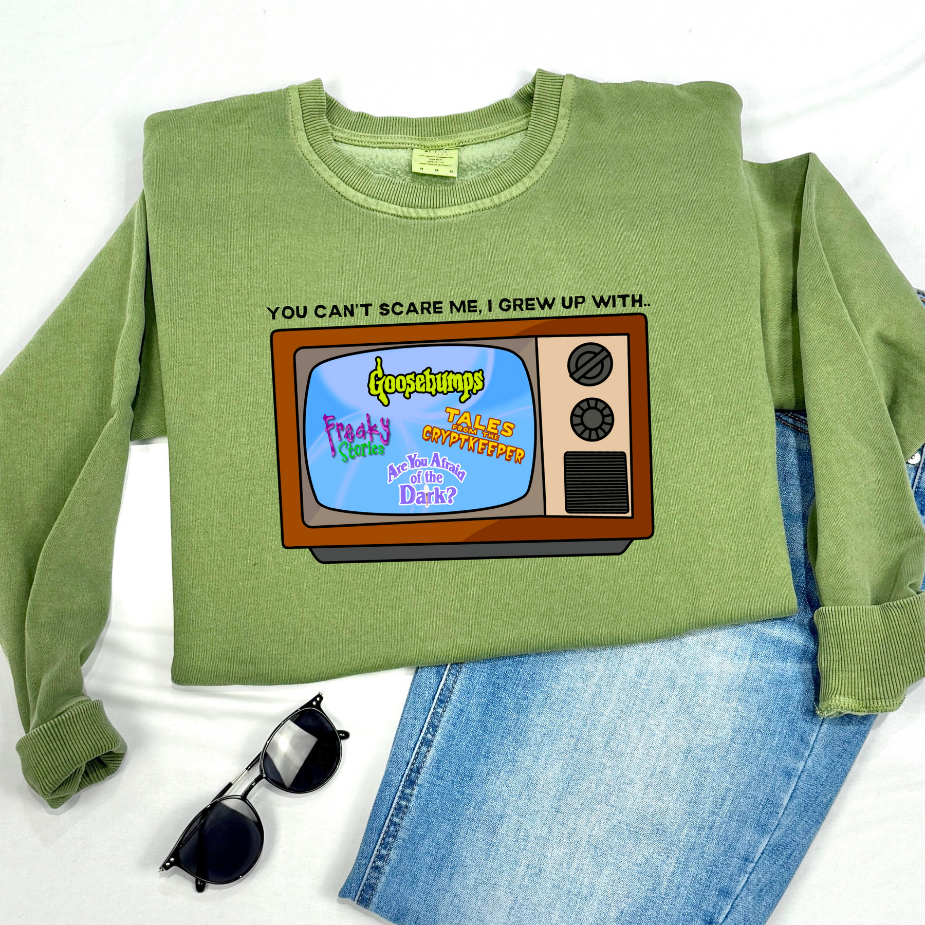 nostalgic 90s scary tv shows goosebumps ayaotd cryptkeeper nostalgia retro high quality DTF printed sweatshirt hoodie crewneck
